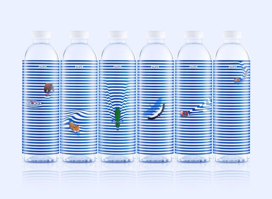 동물의 선택도 흥미롭습니다. 왜냐, 동물은 물이 필수적인 다양한 지역과 서식지를 대표하기 때문입니다. 물결 모양의 선은 동물을 물 장면에 통합할 뿐만 아니라 역동적이고 유동적인 효과를 만드는 영리한 방법입니다. 디자인은 예술, 과학, 감성을 조화롭게 결합한다는 점에서 독특합니다. 물과 생명, 그리고 그것들이 어떻게 서로 상호의존적이고 소중한지에 대한 이야기를 들려줍니다. 또한 소비자가 태국의 아름답고 비옥한 숲에서 나오는 천연 수원을 감상하고 존중하도록 유도합니다.