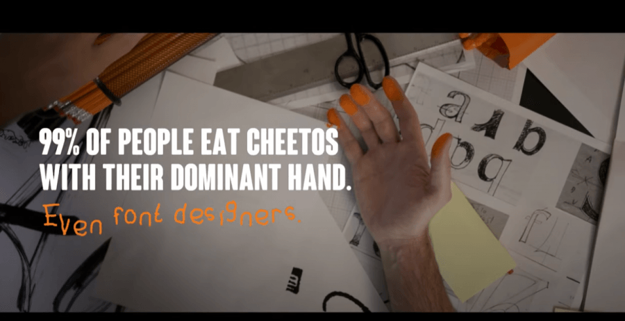 이 폰트는 디자이너들이 일부러 반대손으로 완성한 작품이다. 비록 실제로 치즈 가루가 묻어 있지는 않겠지만, 치토스를 먹을 때의 지저분하고 장난기 넘치는 감성이 생생히 담겨있다. 결국, 이 폰트는 브랜드의 정체성을 직관적이고 효과적으로 시각화한 것이다. 엉망진창이면서도 유쾌하고, 무엇보다 진정한 의미에서 인간적이다.