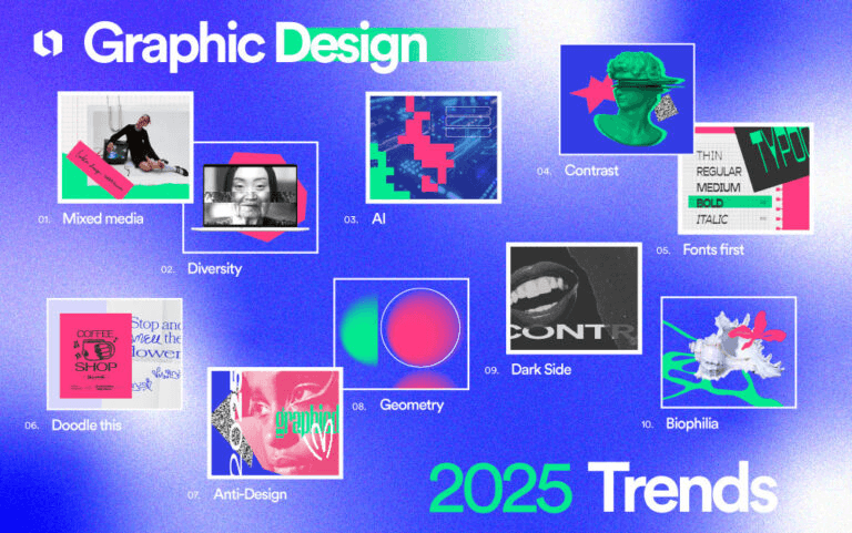 2025년에는 그래픽 디자이너들이 스크랩북, 다양성 및 포용성, 손으로 그린 듯한 수제 느낌에 적극적으로 참여하고 있습니다. 그리고 놀랍게도 AI 기반 디자인의 영향력이 더 커졌습니다.