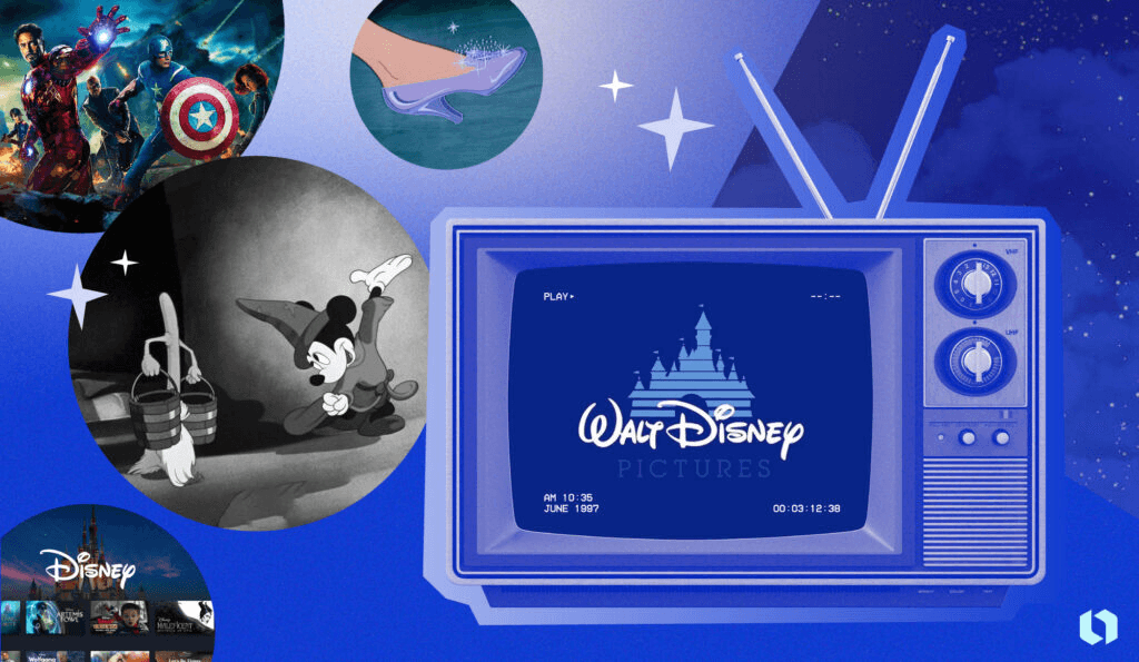 오늘날 반짝이는 성과 마법의 곡선을 그리는 별빛 아치로 완성된 디즈니 로고는 스토리텔링, 어린 시절의 향수, 상상력, 그리고 세대를 잇는 가족 엔터테인먼트를 상징합니다