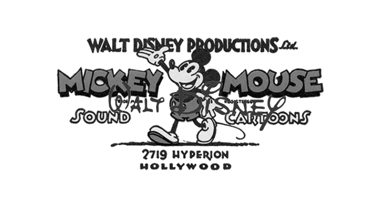 디즈니의 초기 로고는 손으로 쓴 듯한 "Walt Disney Productions"이라는 단순한 워드마크였습니다. ‘실리 심포니즈’나 ‘미키 마우스’ 시리즈의 타이틀 카드에 각기 다르게 등장하며, 통일된 비주얼 아이덴티티보다는 캐릭터 자체의 매력 구축에 초점을 두었습니다.