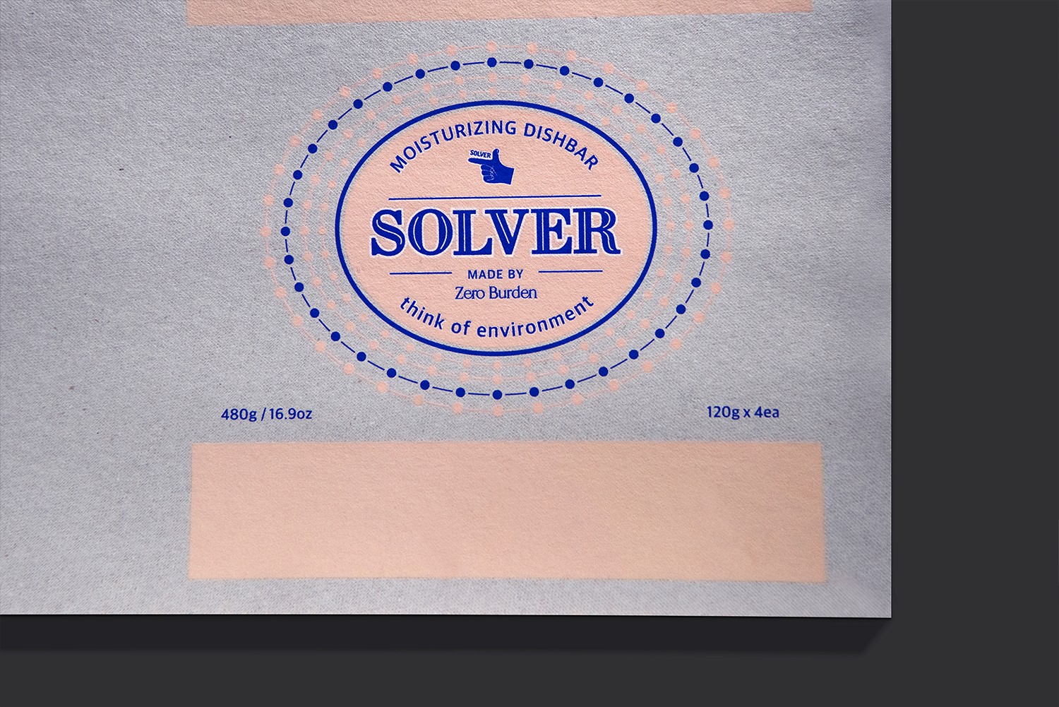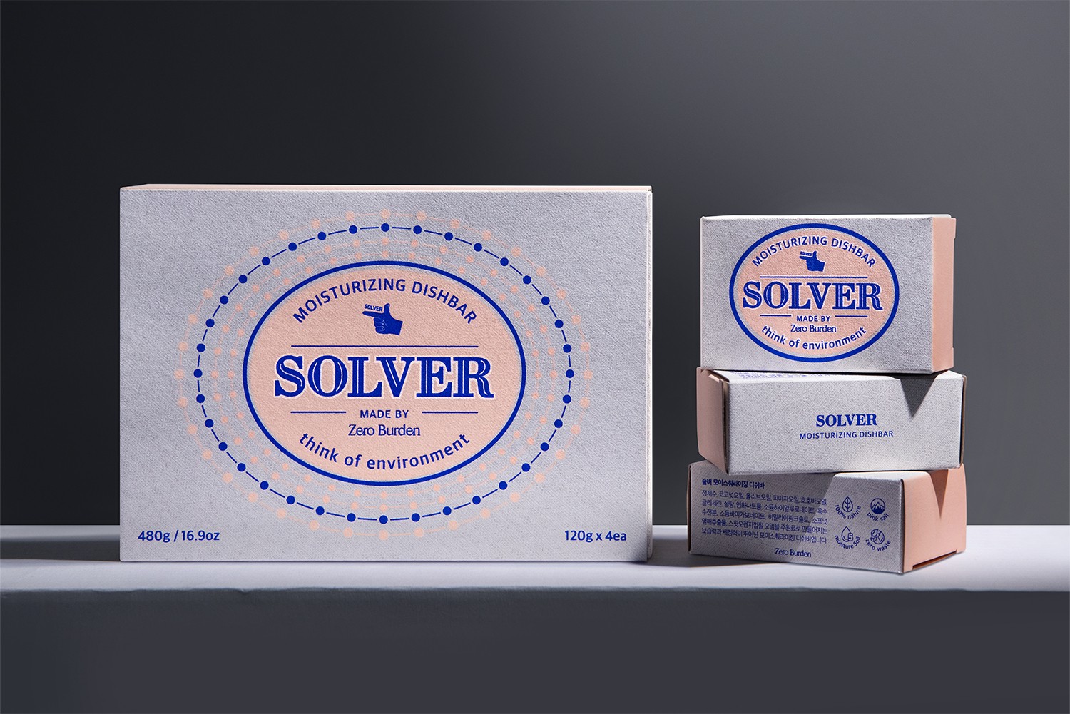 Zero Burden은 자연 유래 성분으로 라이프 케어 제품을 만드는 브랜드입니다. ‘해결사’라는 이름의 Solver 모이스춰라이징 디쉬바는 단순한 주방 세제가 아니라, 환경과 일상의 균형을 제안하는 오브제로 기획되었습니다. 이번 프로젝트는 하이디자인(HiDesign)이 그래픽과 콘셉트를 설계하고, 박스마스터(Boxmaster)가 그 디자인을 실제 구조와 질감으로 구현한 협업입니다.